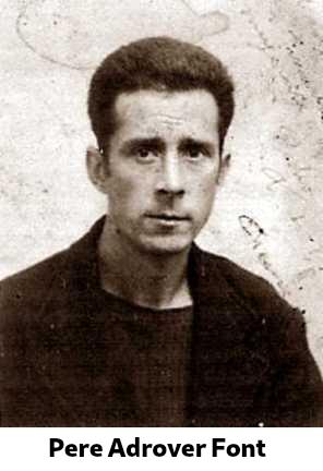 le militant anarchiste Pere Adrover Font “El Yayo o El Laio”, a joué un rôle très remarquable dans la guérilla anarchiste. Né à Palma, Majorque, Illes Baléars, date de naissance inconnue. De profession vitrier, en 1936, il était secrétaire de la Fédération ibérique des jeunes libertarias (FIJL) de Masnou, Maresme, Catalunya. Lorsque le soulèvement fasciste est advenu, il s’est enrôlé dans la colonne « Los Aguiluchos » de la Fédération anarchiste ibérique (FIA).