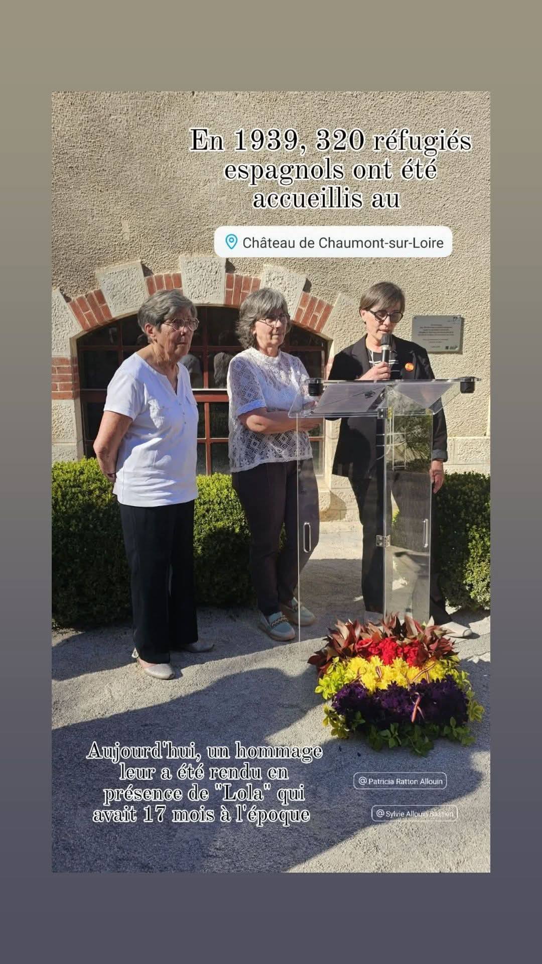 Cette cérémonie commémorative inédite qui s’est tenue dans l’ancienne ferme du domaine, à l’entrée, on la doit à la ténacité de ces femmes, qui ont fait leur vie en Loir-et-Cher mais dont les racines et le cœur sont restés en Espagne. « Vous avez donné un nom, un visage, à ceux dont l’histoire a été reléguée au silence », les remercie Jean-Marie Beyer, président du Souvenir français. Désormais, les centaines de milliers de visiteurs du Festival international des Jardins passeront forcément devant cette plaque. Peut-être ne s’y arrêteront-ils pas. Pourtant, le message interpelle : « En hommage aux 320 femmes et enfants fuyant la répression franquiste réfugiés en 1939 dans les dépendances et écuries du château de Chaumont. Pour que demeure la mémoire. »